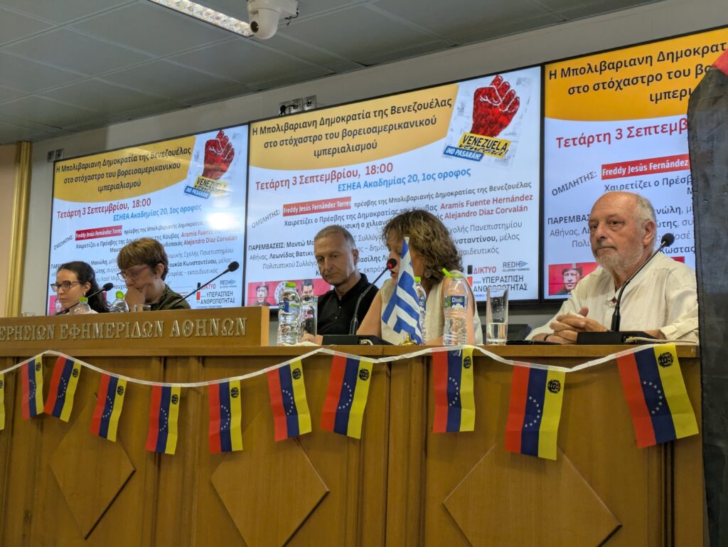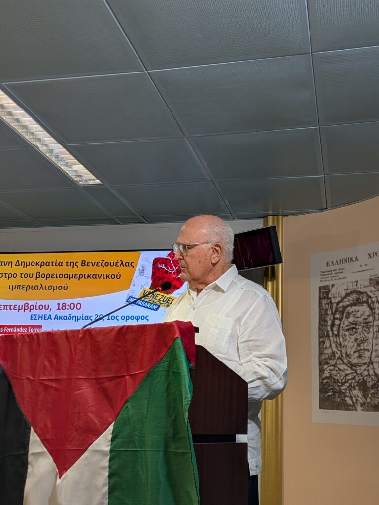 Ο πρέσβης της Μπολιβαριανής Δημοκρατίας της Βενεζουέλας, Φρέντι Φερνάντες Τόρες, τόνισε πως «η ποινικοποίηση και δυσφήμιση της επαναστατικής ηγεσίας είναι ένα επαναλαμβανόμενο μοτίβο του ιμπεριαλισμού», ενώ προειδοποίησε για τη σοβαρότερη απειλή που έχει δεχτεί η Λατινική Αμερική τις τελευταίες δεκαετίες. «Η κατάσταση συγκρίνεται μόνο με την Κρίση των Πυραύλων του 1962» στην Κούβα, τόνισε ο πρέσβης, καταγγέλλοντας την πολιτική «μέγιστης πίεσης» των ΗΠΑ, η οποία στοχεύει όχι μόνο τη Βενεζουέλα αλλά και την Κούβα και ολόκληρη τη Λατινική Αμερική. Μάλιστα, υπογράμμισε ότι στόχος είναι η κυριαρχία και τα τεράστια πετρελαϊκά αποθέματα της χώρας, διαψεύδοντας τις κατηγορίες της Ουάσινγκτον ότι η Βενεζουέλα παράγει ναρκωτικά και ξεπλένει χρήμα, ενώ κατηγόρησε τις ΗΠΑ για «διπλωματία των κανονιών» και παραβίαση του διεθνούς δικαίου.