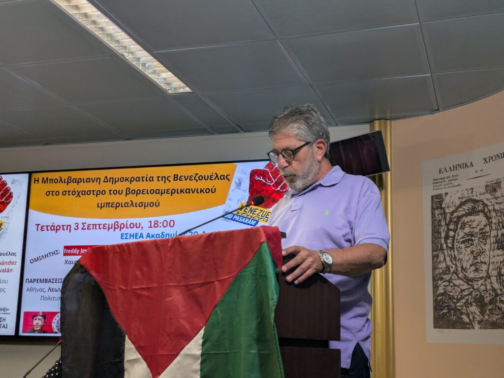 Ο συγγραφέας και εκπαιδευτικός Βασίλης Λιόσης μίλησε για το φαινόμενο της αποικιοκρατίας και του ιμπεριαλισμού, ενώ αναφέρθηκε και στην ελληνικά εμπειρία των μνημονίων, που «προσιδιάζουν σε πολιτικές που εφαρμόστηκαν στη Λατινική Αμερική». Αναφέρθηκε στα «απομεινάρια της παλιάς αποικιοκρατικής πολιτικής σε χώρες της Αφρικής, όπου για παράδειγμα η Γαλλία επιβάλλει φόρο αποαποικιοποίησης σε πρώην αποικίες της», ενώ «εξακολουθεί η εκμετάλλευσης της Αφρικής από τις ξένες πολυεθνικές», με κάποιες χώρες του «τρίτου κόσμου» να γίνονται σκουπιδότοποι μετατρέπονται σε σκουπιδότοποι της Δύσης. Υπενθύμισε ότι επί προεδρίας Τσάβες αναβίωσε ο αποικιοκρατικός ρατσισμός, «αφού η ολιγαρχία, η αντιπολίτευση και τα ΜΜΕ που ελέγχονται από την ολιγαρχία τον αποκαλούσαν λόγω της καταγωγής του “πίθηκο” ή “νέγκρο”». Στη συνέχεια τόνισε πως οι νέες απειλές κατά της Βενεζουέλας στοχεύουν στον έλεγχο των πετρελαίων της χώρας, την ανατροπή μιας κυβέρνησης που ακολουθεί μη αρεστές πολιτικές στις ΗΠΑ και το σπάσιμο των σχέσεων με τη Ρωσία, την Κίνα, το Ιράν και την Κούβα. Επιπλέον, προσέθεσε πως υπάρχει ένας άλλος λόγος που είναι η υποχώρηση της οικονομικής ισχύος της Ουάσινγκτον απέναντι στην άνοδο της Κίνας. Ωστόσο, σημείωσε πως οι ΗΠΑ παραμένουν η πρώτη στρατιωτική δύναμη με πάνω από 800 βάσεις και δεν είναι διατεθειμένες «να παραδώσουν αμαχητί την πρωτοκαθεδρία τους», αλλά «θα επιδίδονται σε περιφερειακές συρράξεις, είτε η ανθρωπότητα θα γνωρίσει ένα Τρίτο Παγκόσμιο Πόλεμο». Προειδοποίησε πως ο ιμπεριαλισμός παίρνει «την πιο αποτρόπαια μορφή του και αποκτά ακροδεξιά και νεοφασιστικά χαρακτηριστικά», καθώς «ακροδεξιά, νεοφασιστικά και νεοναζιστικά είτε ηγούνται κυβερνήσεων, είτε αποτελούν κυβερνητικούς εταίρους, είτε προαλείφονται για την εξουσία», και «η ακροδεξιά συμπλέκεται με τον ιμπεριαλισμό, τα φαινόμενα αποικιοκρατία και το νεοφιλελευθερισμό»».
